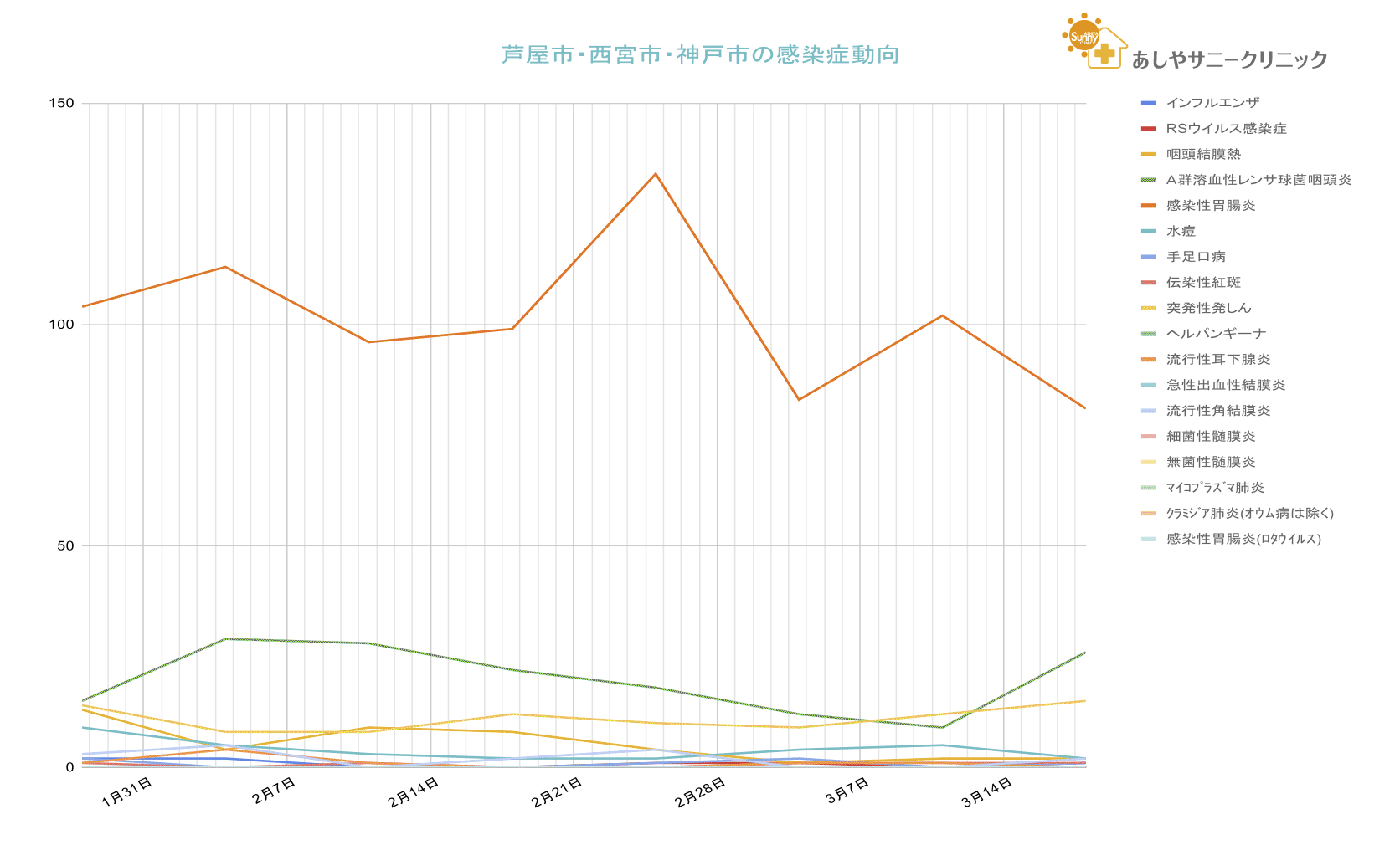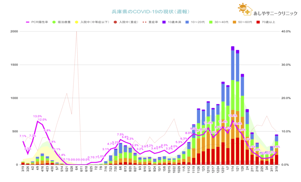 兵庫県感染症情報センターからリリースされている週報から芦屋市・西宮市・神戸市の情報をピックアップして集計したものと、兵庫県のCOVID-19関連のデータを集計したものを配信しています。