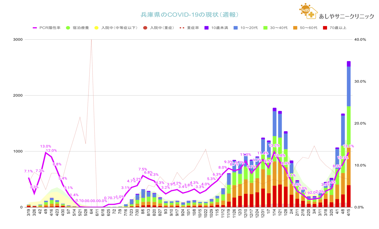 兵庫県感染症情報センターからリリースされている週報から芦屋市・西宮市・神戸市の情報をピックアップして集計したものと、兵庫県のCOVID-19関連のデータを集計したものを配信しています。