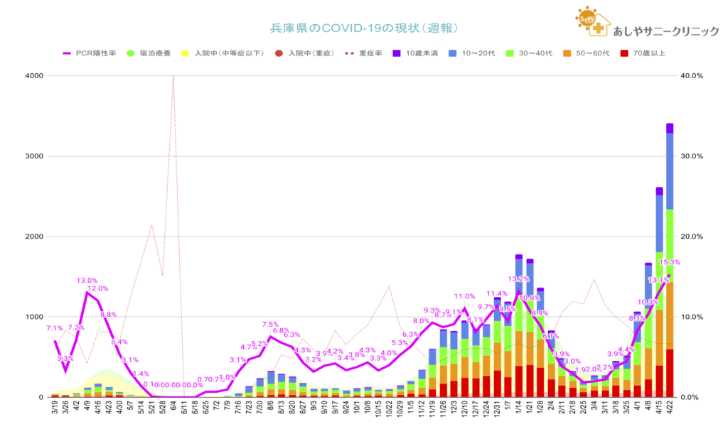 兵庫県感染症情報センターからリリースされている週報から芦屋市・西宮市・神戸市の情報をピックアップして集計したものと、兵庫県のCOVID-19関連のデータを集計したものを配信しています。