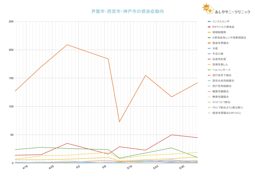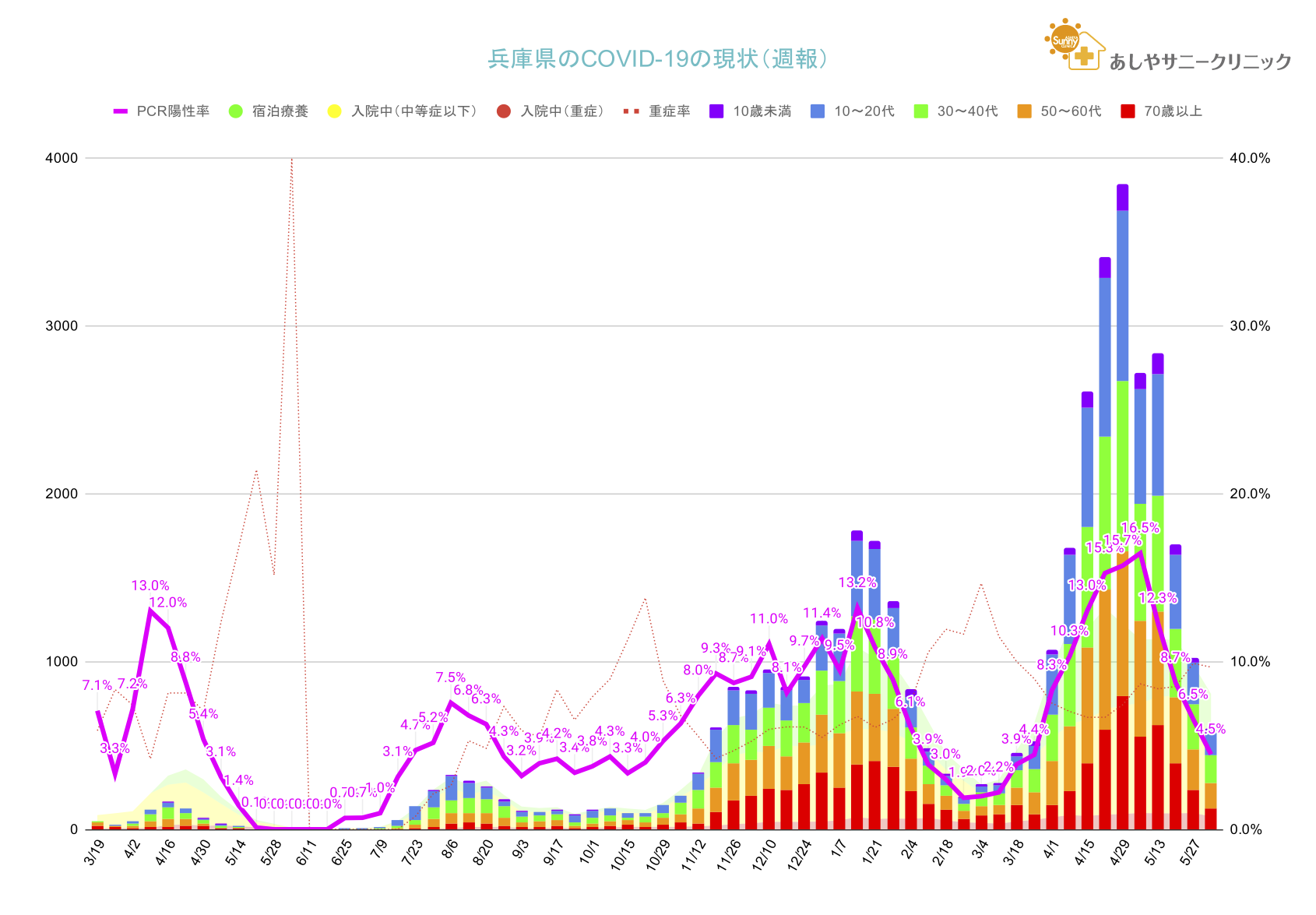 兵庫県感染症情報センターからリリースされている週報から芦屋市・西宮市・神戸市の情報をピックアップして集計したものと、兵庫県のCOVID-19関連のデータを集計したものを配信しています。