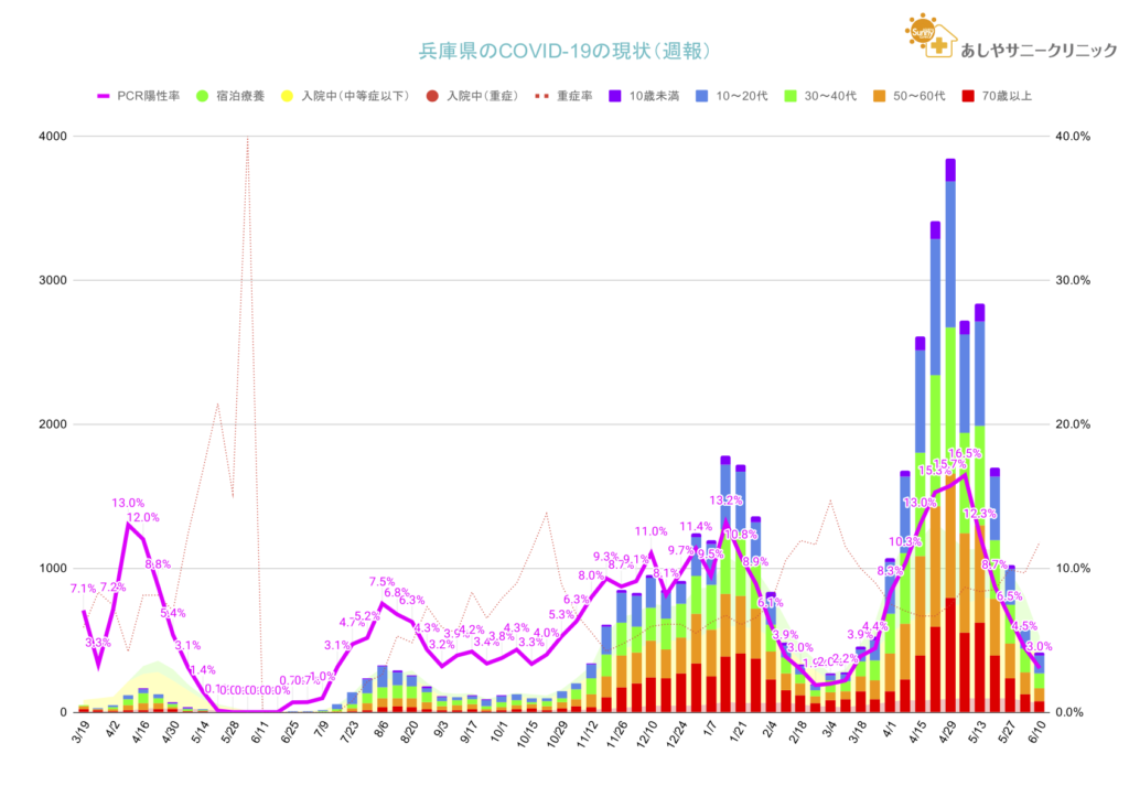 兵庫県感染症情報センターからリリースされている週報から芦屋市・西宮市・神戸市の情報をピックアップして集計したものと、兵庫県のCOVID-19関連のデータを集計したものを配信しています。