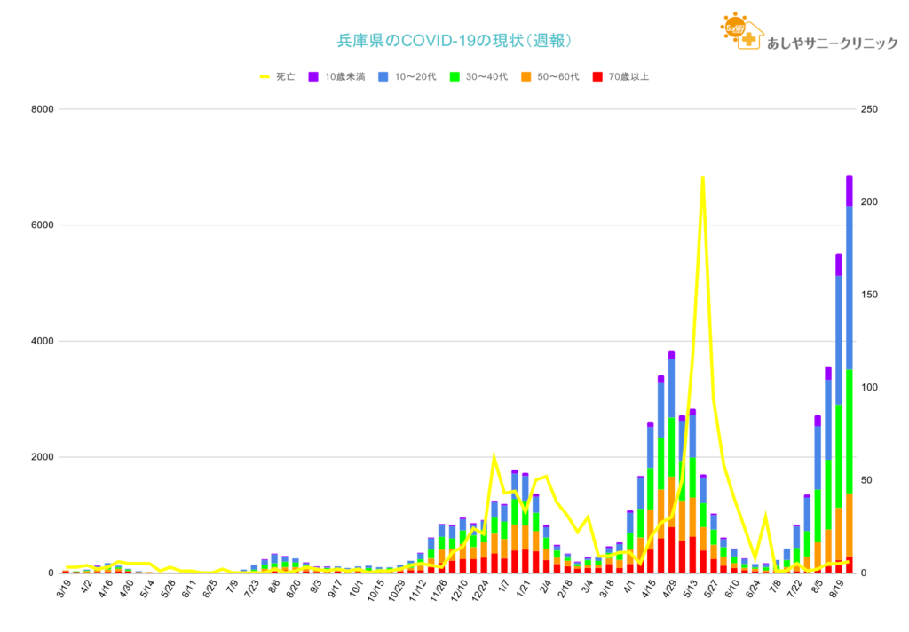兵庫県感染症情報センターからリリースされている週報から芦屋市・西宮市・神戸市の情報をピックアップして集計したものと、兵庫県のCOVID-19関連のデータを集計したものを配信しています。