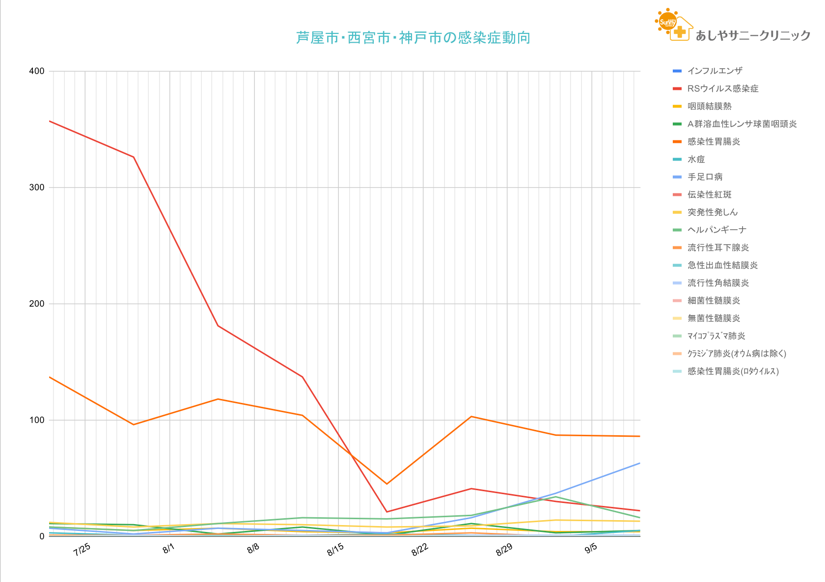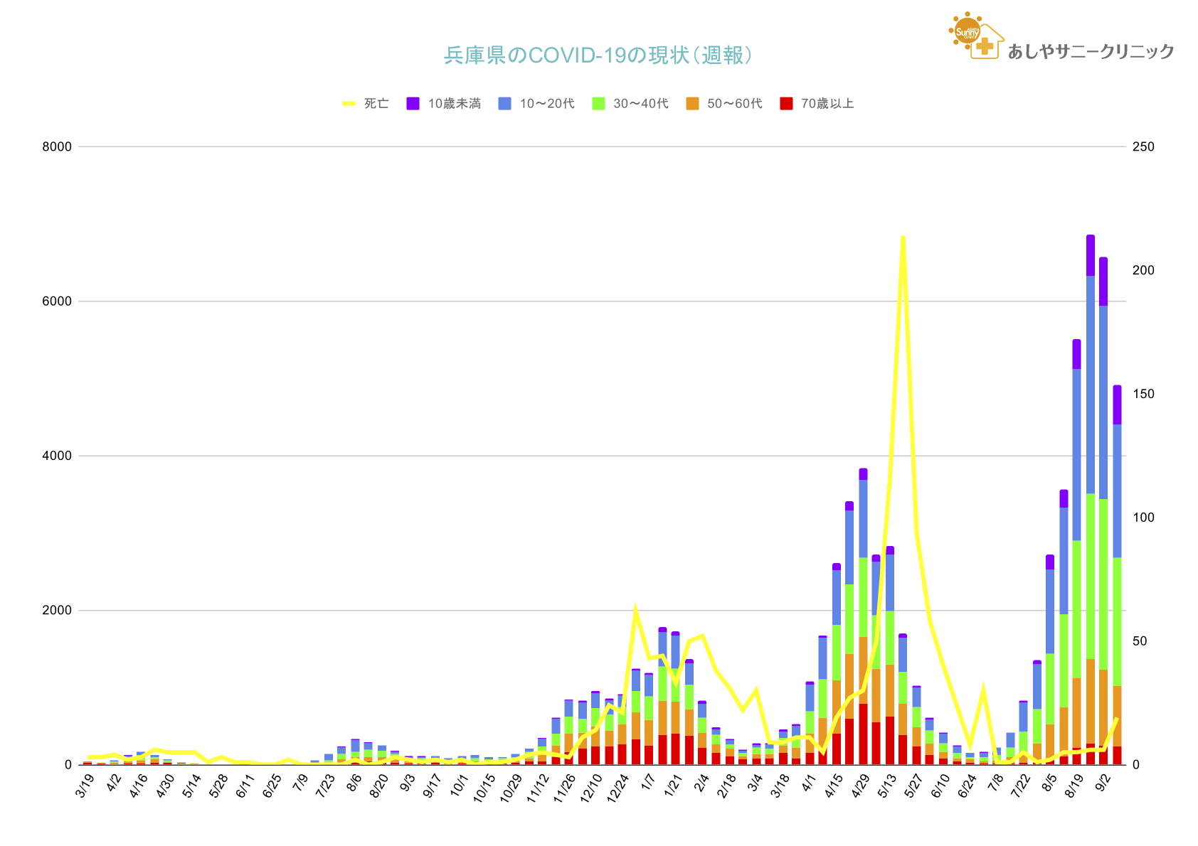 兵庫県感染症情報センターからリリースされている週報から芦屋市・西宮市・神戸市の情報をピックアップして集計したものと、兵庫県のCOVID-19関連のデータを集計したものを配信しています。