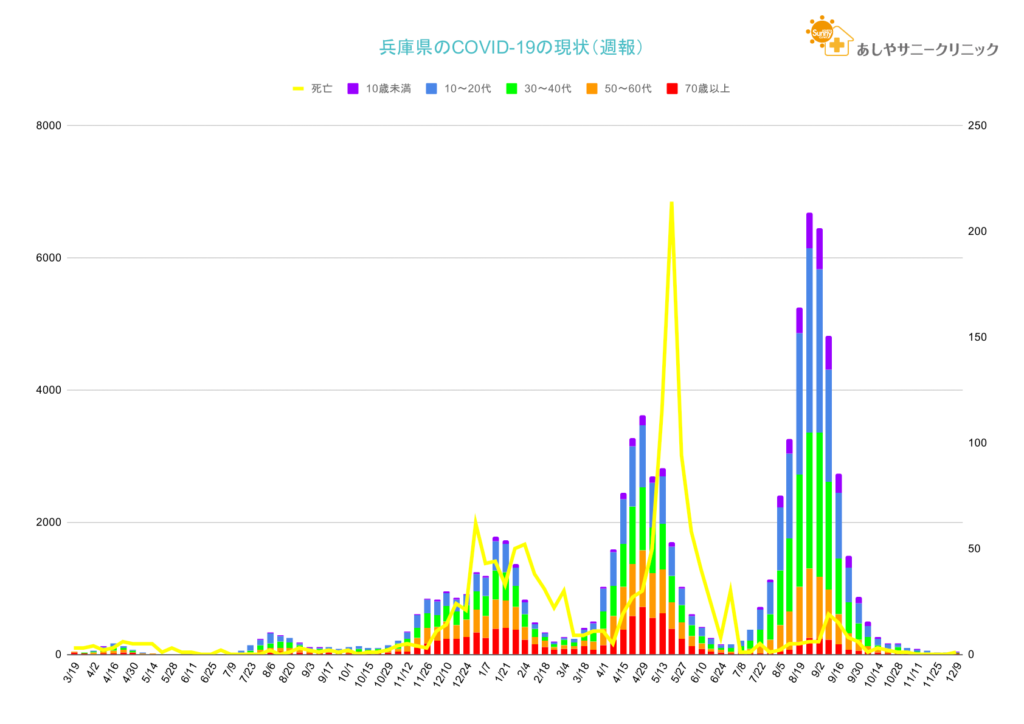 兵庫県感染症情報センターからリリースされている週報から芦屋市・西宮市・神戸市の情報をピックアップして集計したものと、兵庫県のCOVID-19関連のデータを集計したものを配信しています。