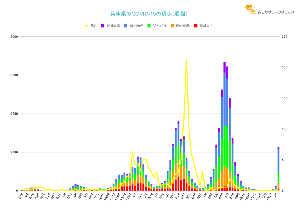 兵庫県感染症情報センターからリリースされている週報から芦屋市・西宮市・神戸市の情報をピックアップして集計したものと、兵庫県のCOVID-19関連のデータを集計したものを配信しています。