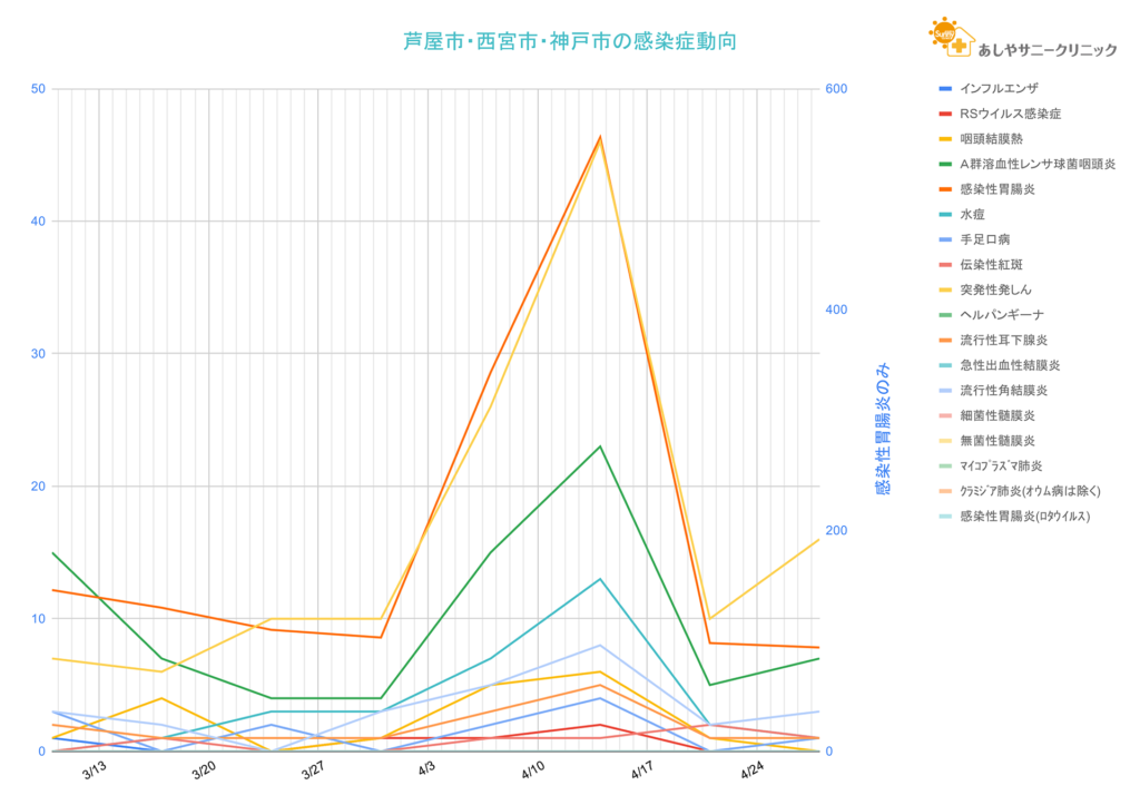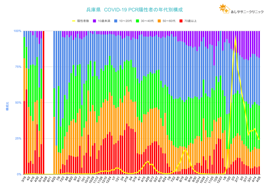 兵庫県感染症情報センターからリリースされている週報から芦屋市・西宮市・神戸市の情報をピックアップして集計したものと、兵庫県のCOVID-19関連のデータを集計したものを配信しています。