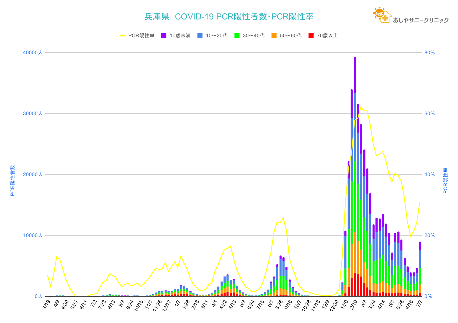 PCR陽性者数は2週連続で増加し、先週の1.8倍になり第6波のピークを上回りました。第7波になりつつあるという印象です。