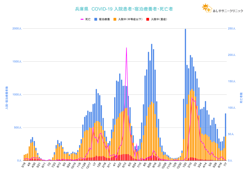 死亡者1名、重傷者数を入院者数+宿泊療養者で割った重症率が0.1%でした。