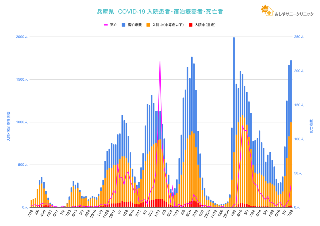 今の所重症者率・死亡者数の動向は第6波と同様の様相です。