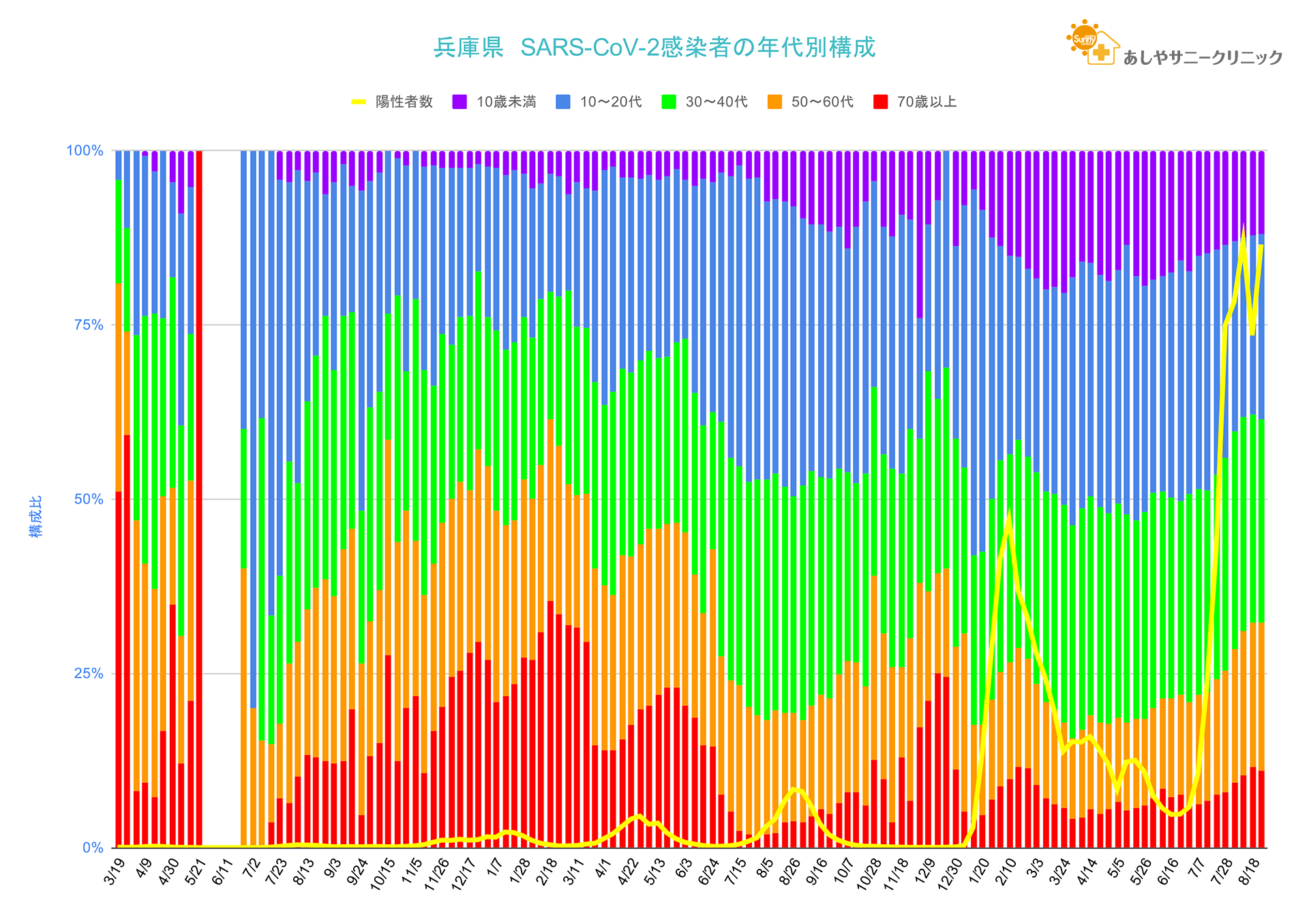 50歳以上の構成比が伸びがピタッと止まりました。一過性のものか来週以降の動向に注意したいと思います。