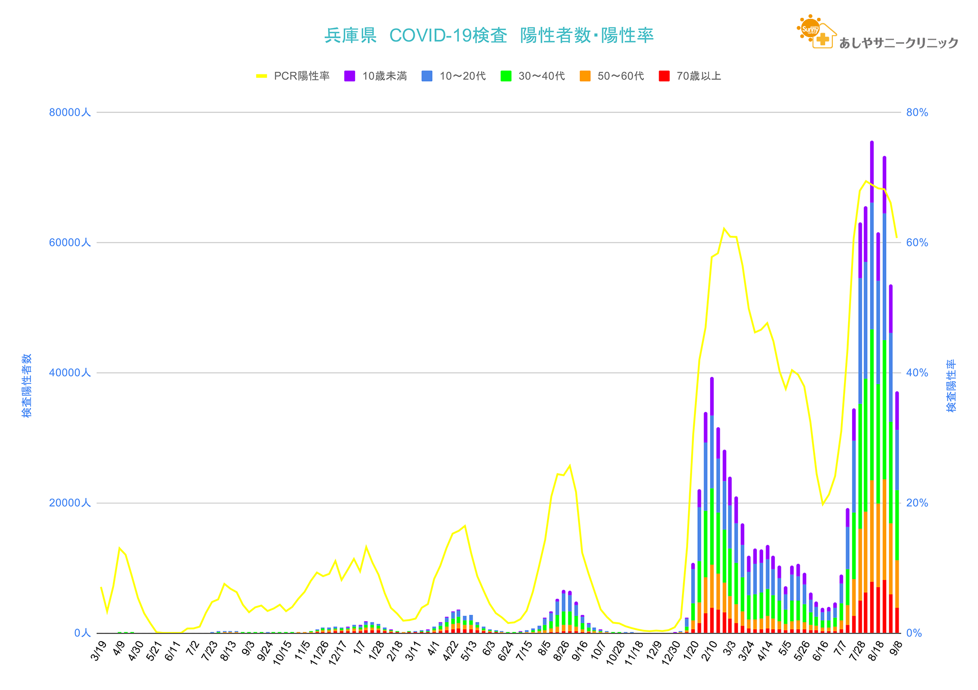 陽性率はピークこそ過ぎていますが依然高く、パターン的には第6波と同様の推移のように思えます。