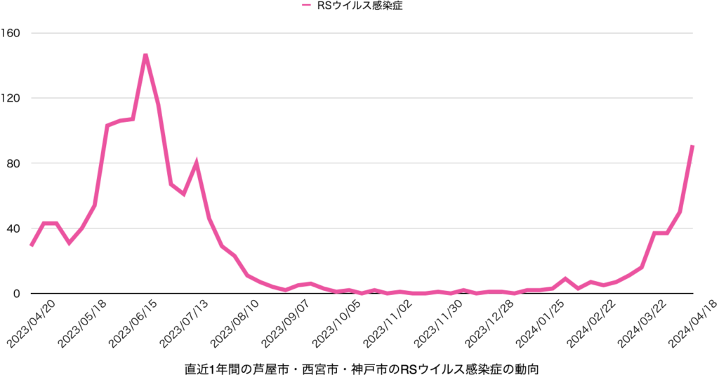 RSウイルス感染症は大きく数を伸ばしてきています。