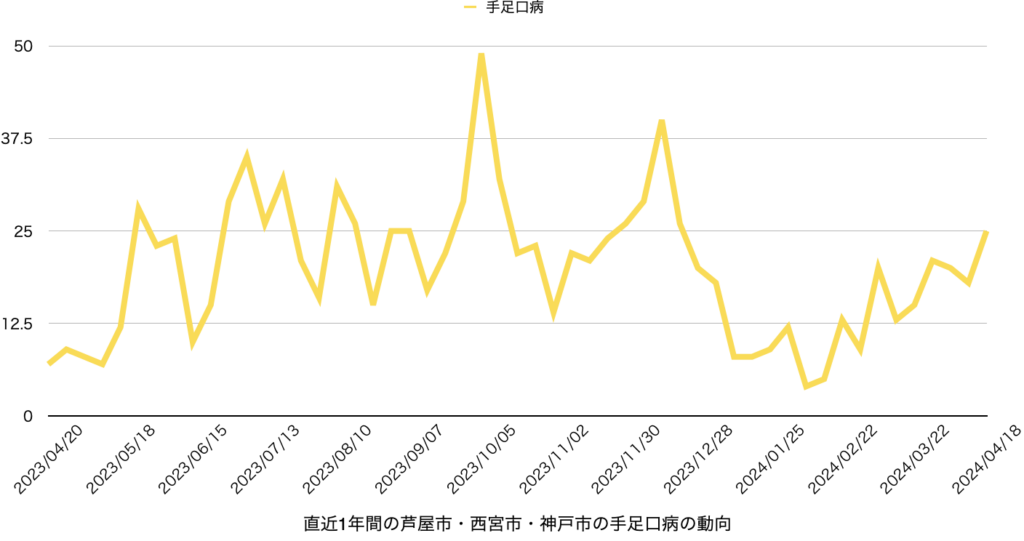 RSウイルス感染症が増加速度を早めつつあり、手足口病も増加傾向になっています。
