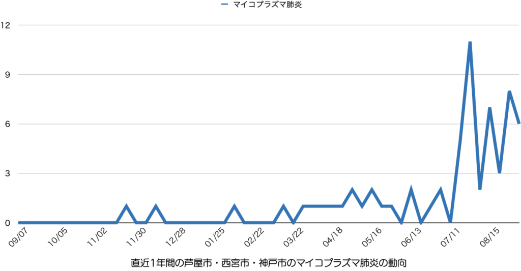 マイコプラズマ肺炎は先週からほぼ変わらないと見るのが妥当なように思われます。