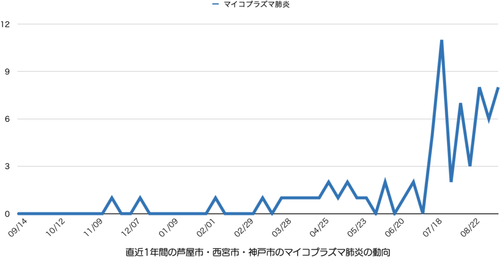 マイコプラズマ肺炎はやや上昇トレンドのように思われます。