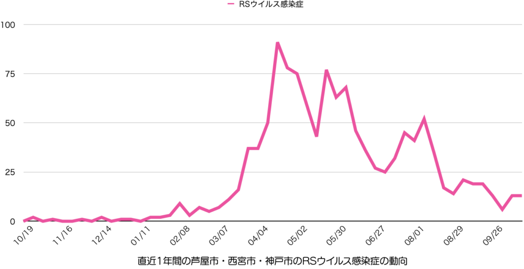 RSウイルス感染症も短期的な増減を繰り返しつつ、減少傾向を維持している様相です。