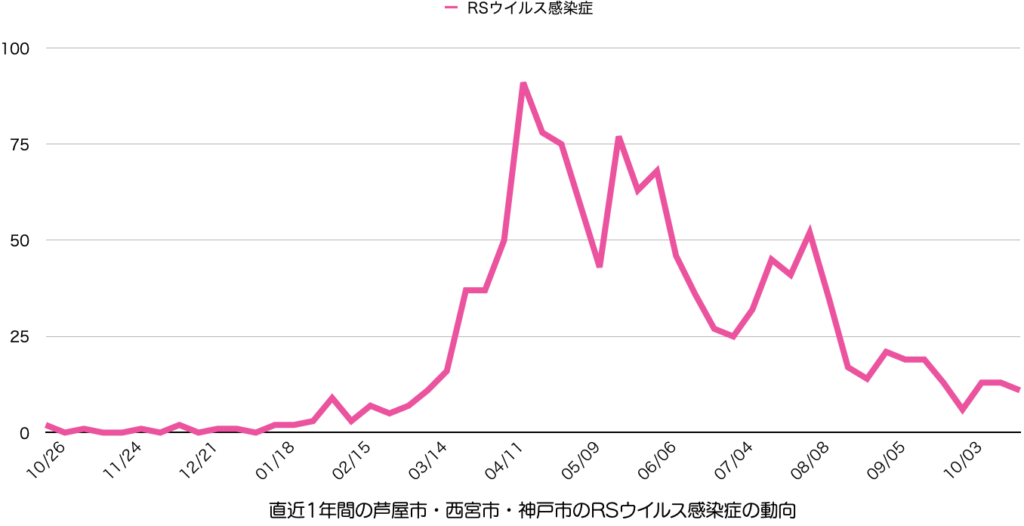RSウイルス感染症も短期的な増減を繰り返しつつ、減少傾向を維持している様相です。