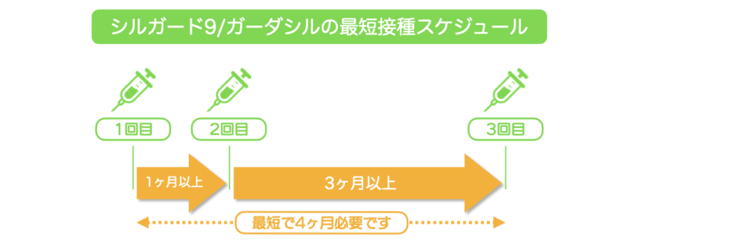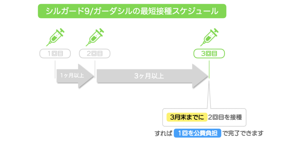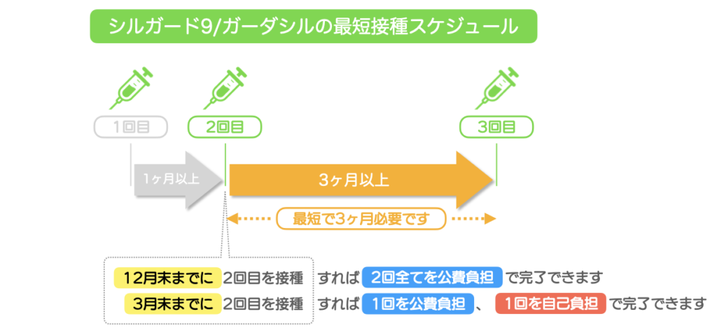 通常の接種スケジュール(標準スケジュール)では3回接種を完了するのに6ヶ月要するため、3月中に完了するには9月の開始が必要でした。