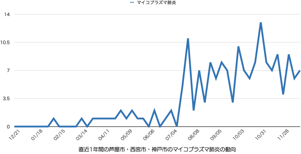 マイコプラズマ肺炎の流行状況は定点報告数という指標で把握します。