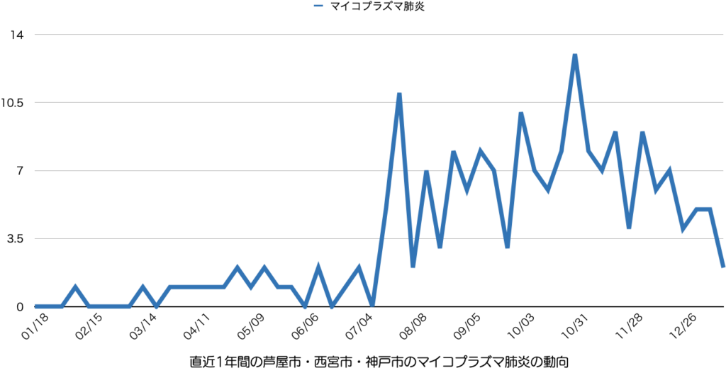 マイコプラズマ肺炎は短期的に増減を繰り返しており把握が難しいところがあります。