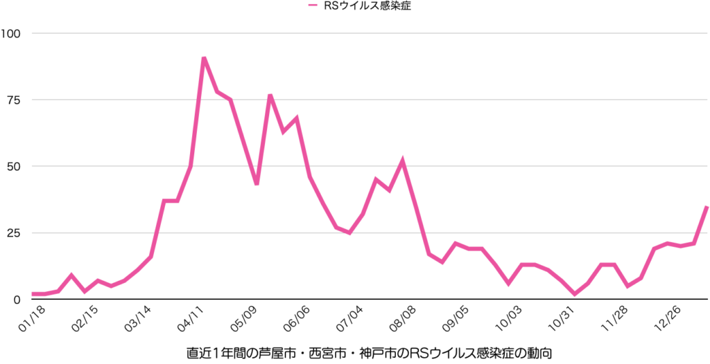 5年程度の周期性の流行を認める傾向があり、前回の当地での流行はまさに2019年末〜2020年2月頃でした。