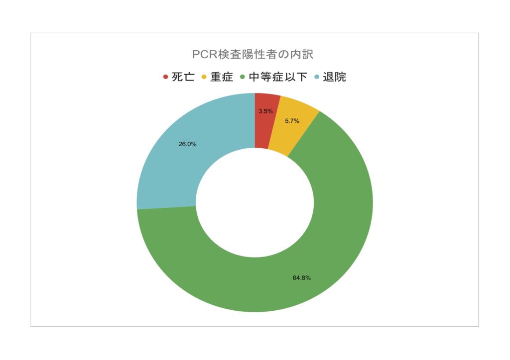 PCR検査陽性者のうち死亡者は3.5%に達します。