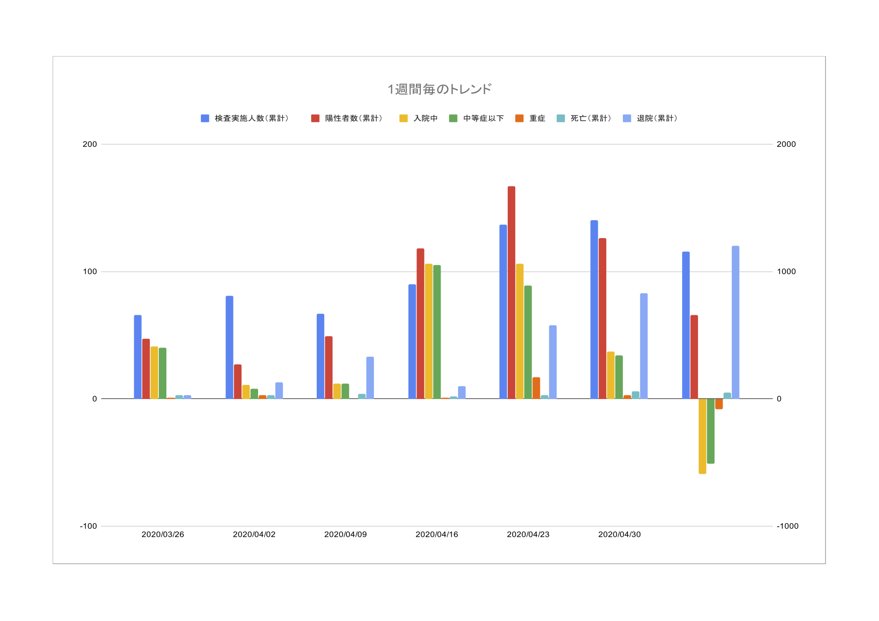 先週までは累計を示したものでしたが、最近の動向(トレンド)が見えるように7日毎の数値の推移が見えるように変更しました。