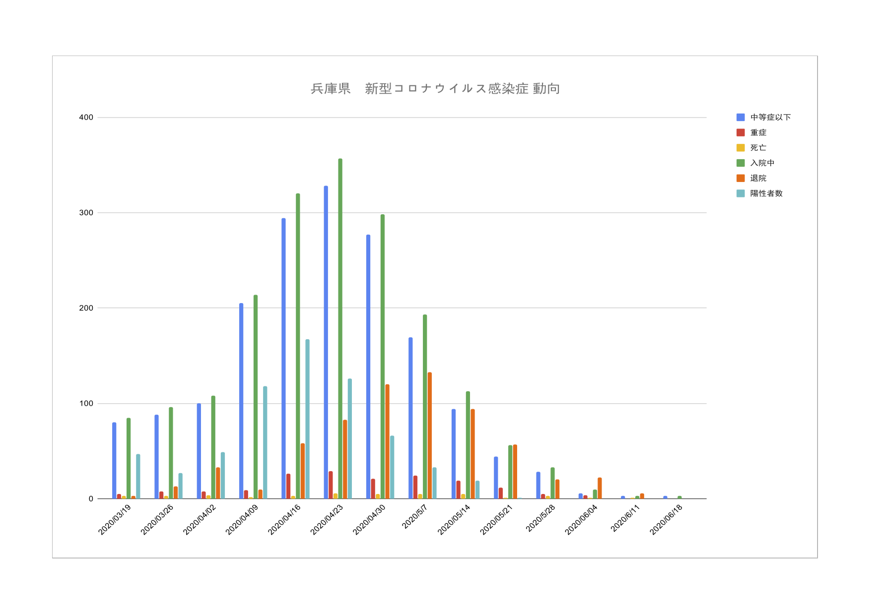 兵庫県の集計では5/16以降1ヶ月間にわたりPCR陽性者はゼロとなりました。さらにこの1週間は死亡者もゼロになりました。