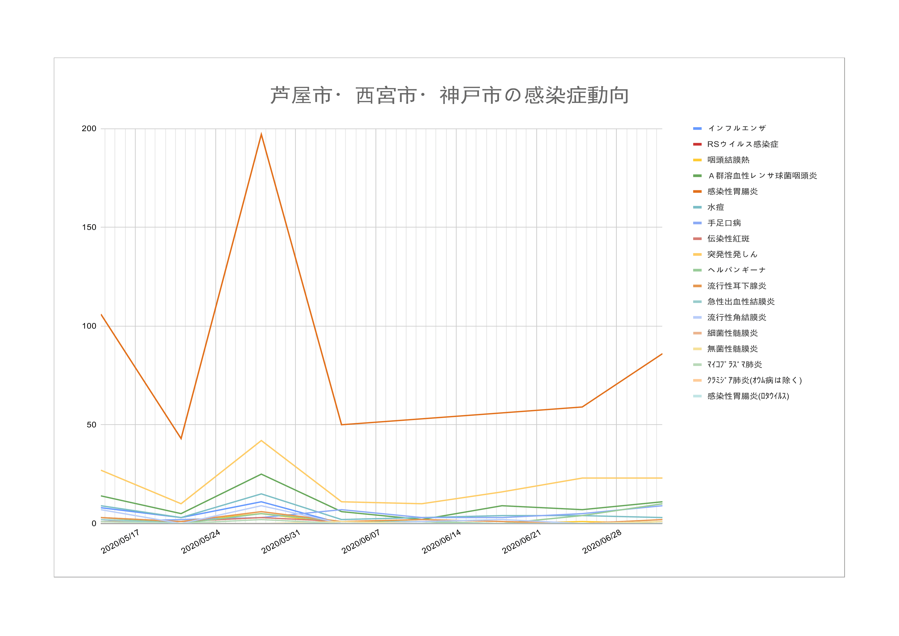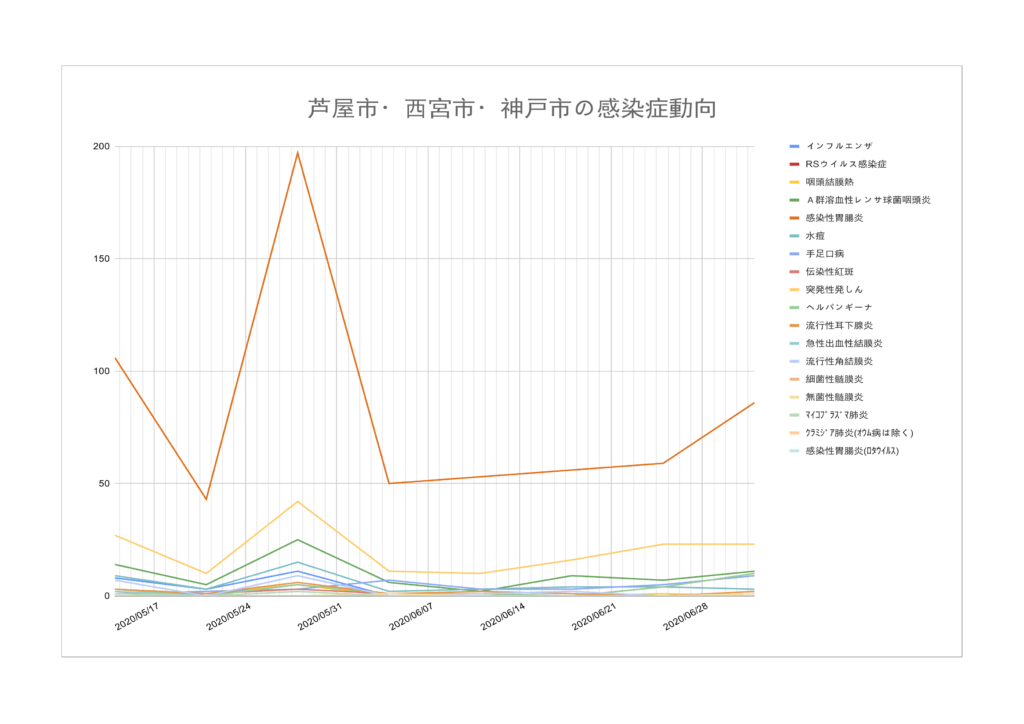兵庫県感染症情報センターからリリースされている週報から芦屋市・西宮市・神戸市の情報をピックアップして集計したものと、兵庫県のCOVID-19関連のデータを集計したものを配信しています。