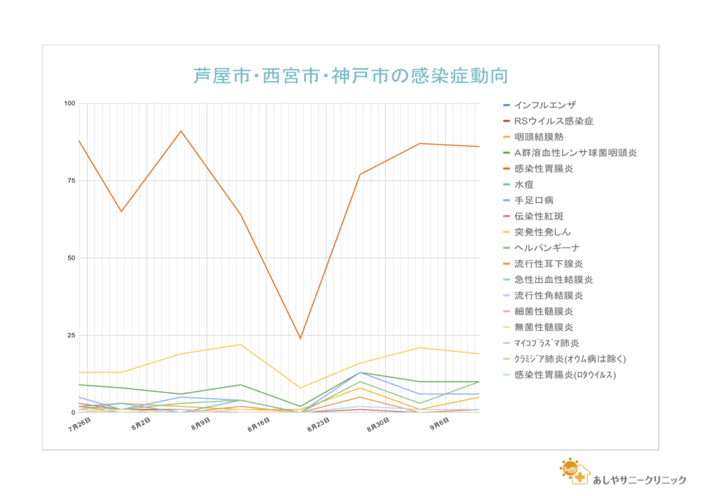兵庫県感染症情報センターからリリースされている週報から芦屋市・西宮市・神戸市の情報をピックアップして集計したものと、兵庫県のCOVID-19関連のデータを集計したものを配信しています。