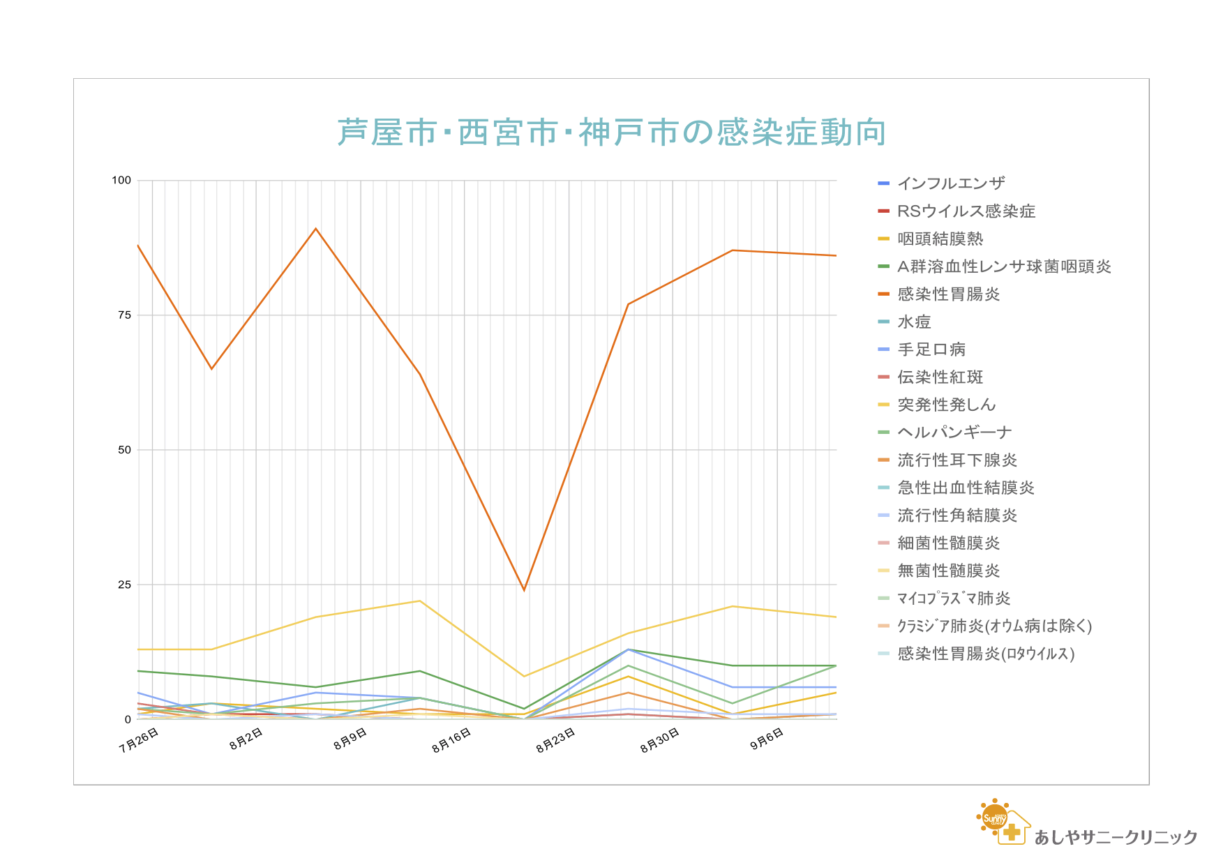 絶対数が多くないのが最近の状況ですが、少数ながらA群溶連菌感染症・手足口病・ヘルパンギーナが増加傾向の印象です。