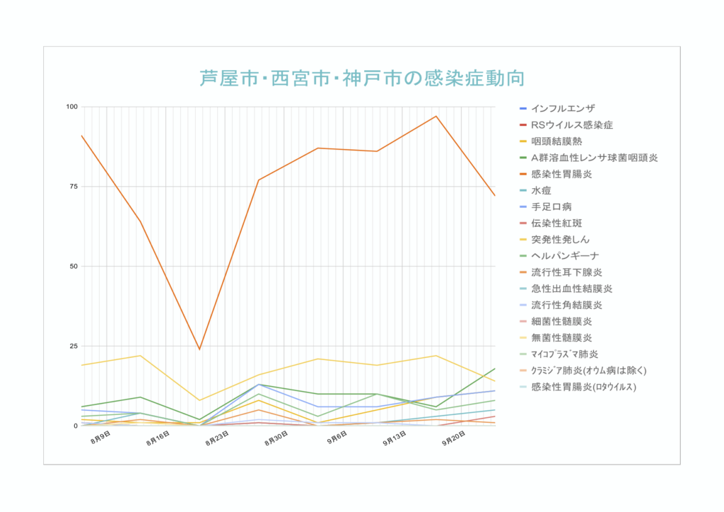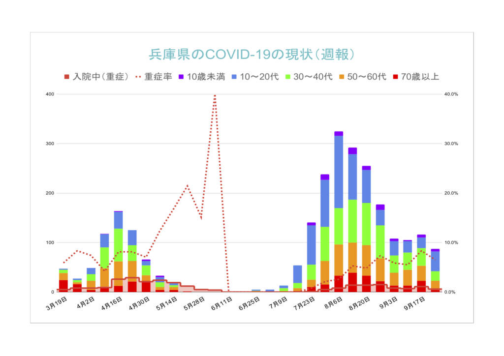 兵庫県感染症情報センターからリリースされている週報から芦屋市・西宮市・神戸市の情報をピックアップして集計したものと、兵庫県のCOVID-19関連のデータを集計したものを配信しています。