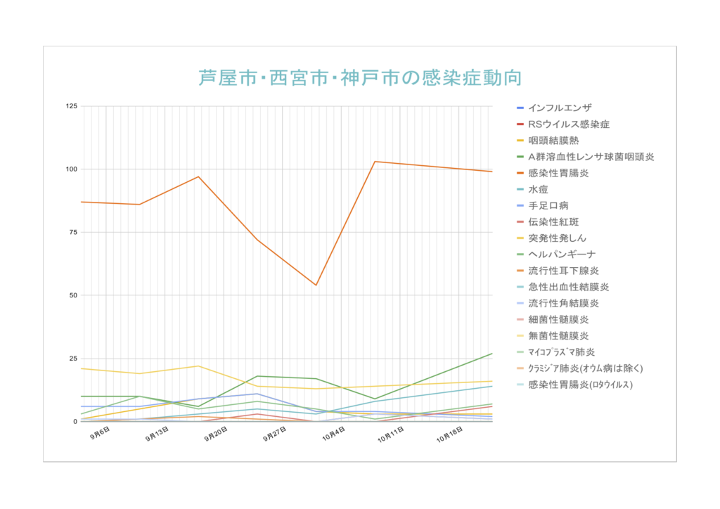 兵庫県感染症情報センターからリリースされている週報から芦屋市・西宮市・神戸市の情報をピックアップして集計したものと、兵庫県のCOVID-19関連のデータを集計したものを配信しています。