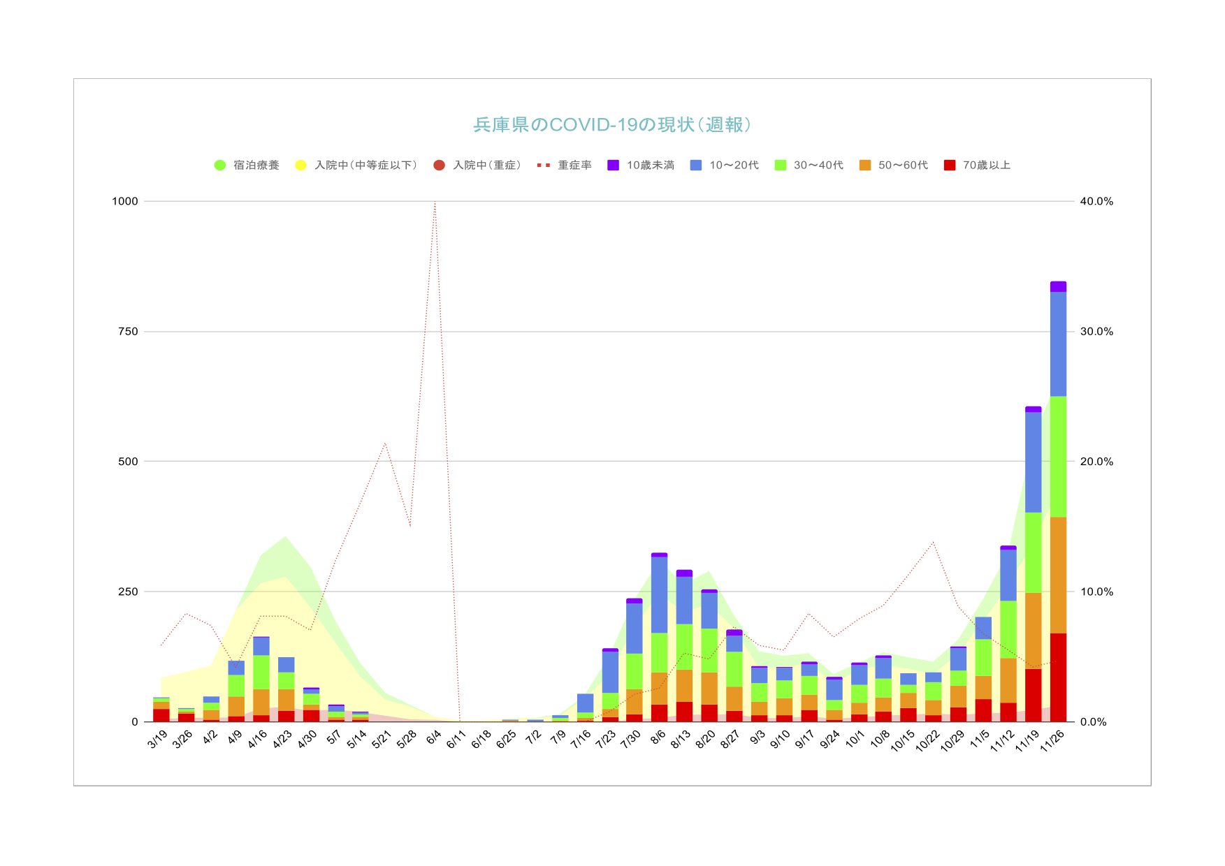 重傷者数はすでに第1波のときの最高数の倍近くに達する30名を超えており、これに高齢者の新規陽性者数が非常に多いことを鑑みると重傷者数はまだまだ増加することが予想される事態です。