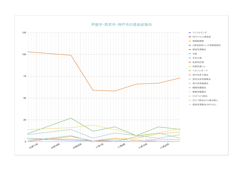 兵庫県感染症情報センターからリリースされている週報から芦屋市・西宮市・神戸市の情報をピックアップして集計したものと、兵庫県のCOVID-19関連のデータを集計したものを配信しています。