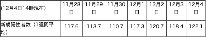 PCR検査の新規陽性者数(1週間平均)は110〜120人/週前後で推移中で、