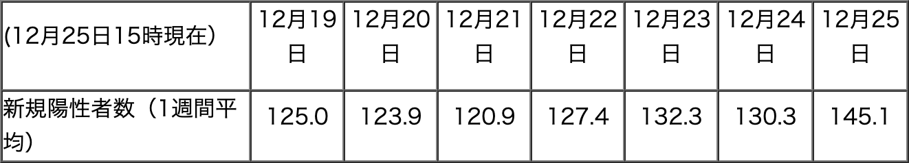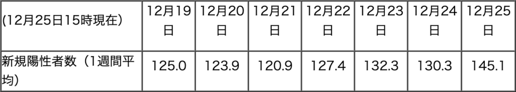 PCR検査の新規陽性者数(1週間平均)はここ数日で120人台/週から130〜140人台/週に増加傾向と見て取れます。数日の動きではなんとも言えませんが、少なくとも減少傾向は全く見られません。