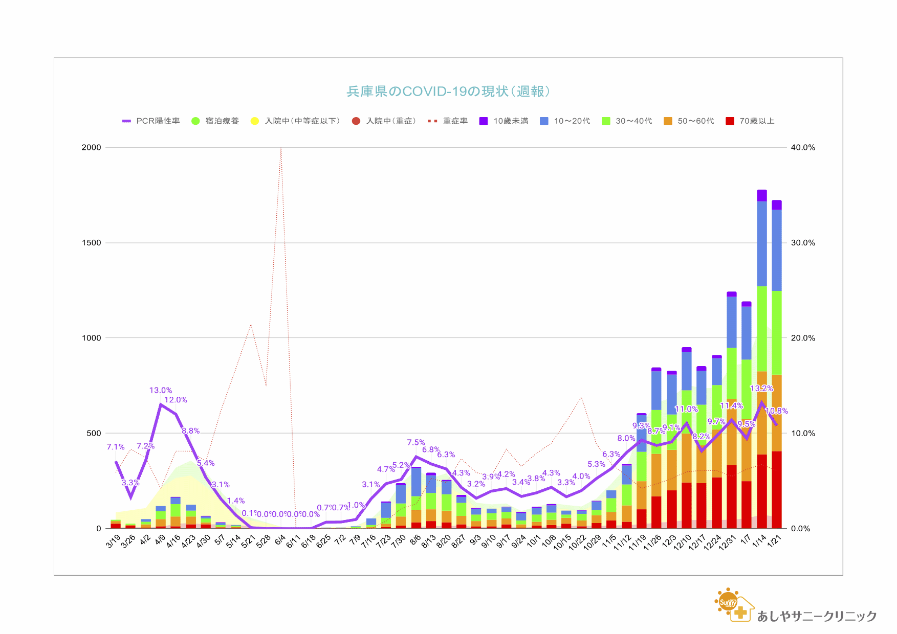 兵庫県感染症情報センターからリリースされている週報から芦屋市・西宮市・神戸市の情報をピックアップして集計したものと、兵庫県のCOVID-19関連のデータを集計したものを配信しています。
