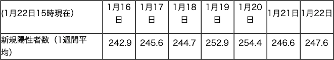 PCR検査の新規陽性者数(1週間平均)は250人/週が続いています。