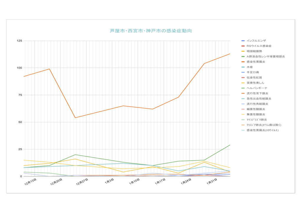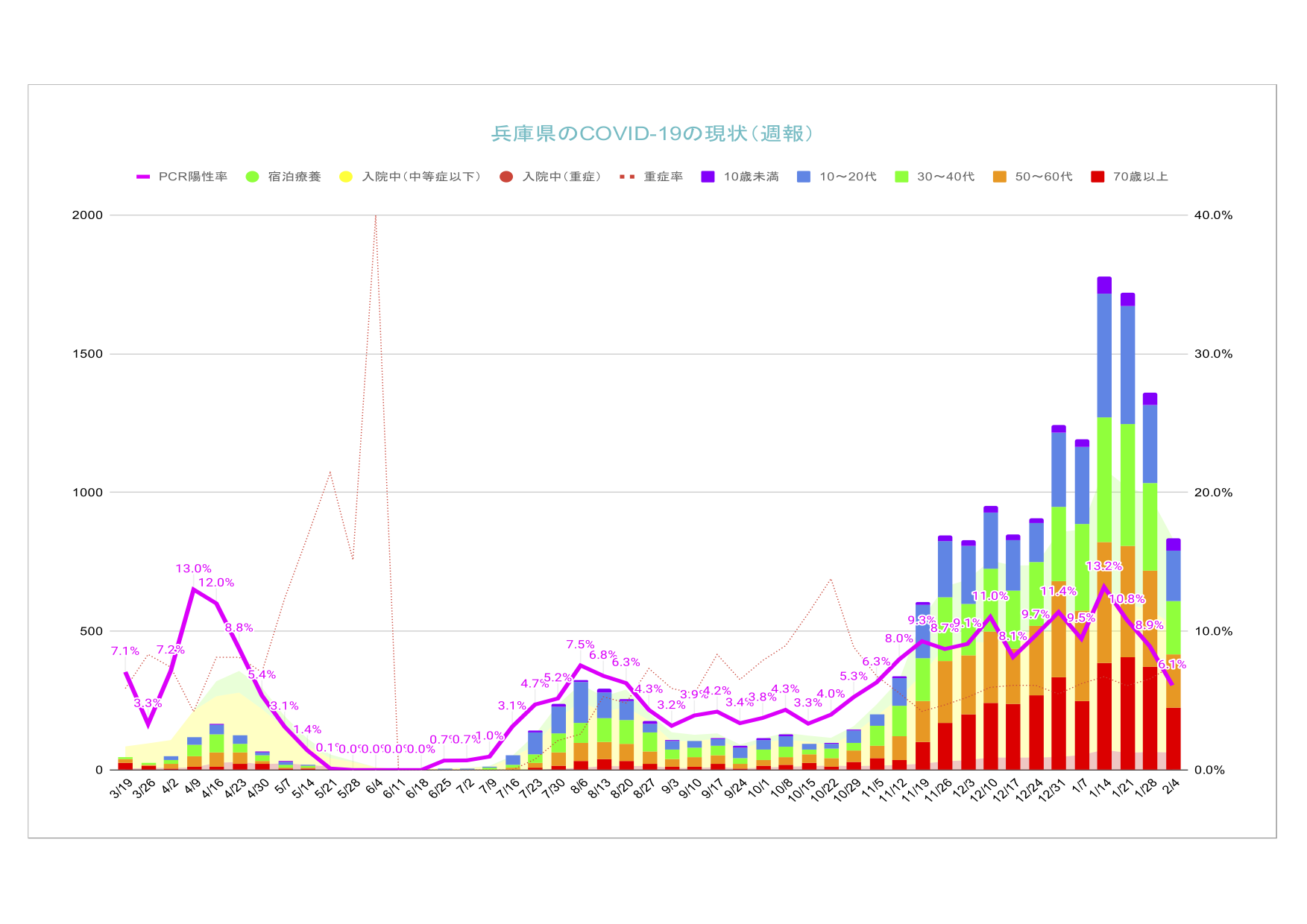 兵庫県感染症情報センターからリリースされている週報から芦屋市・西宮市・神戸市の情報をピックアップして集計したものと、兵庫県のCOVID-19関連のデータを集計したものを配信しています。