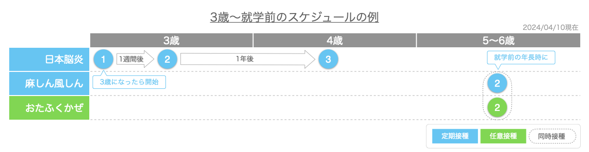 • 3歳になり次第日本脳炎1期初回接種を1週間間隔で受けましょう