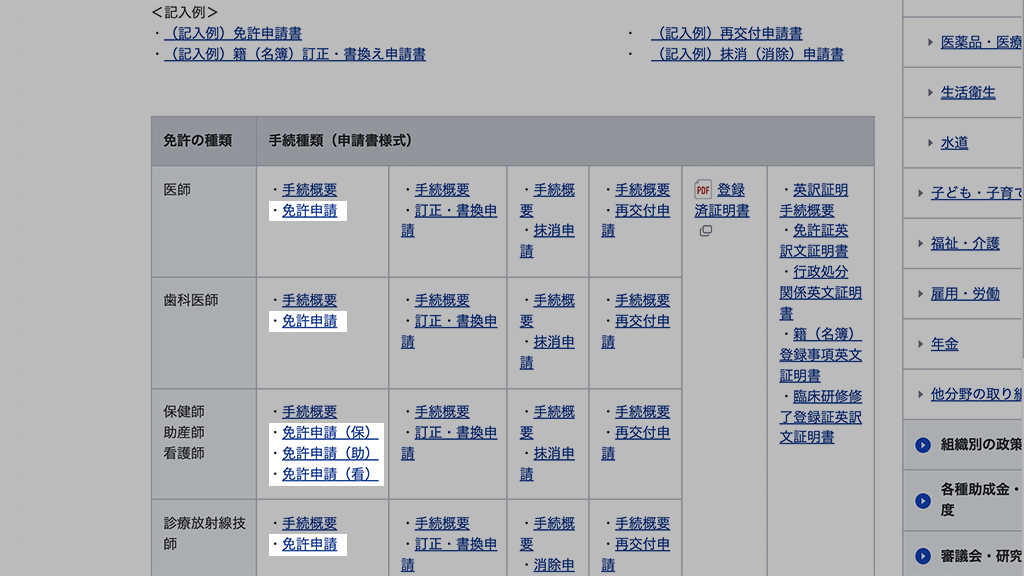 本項では厚生労働省管轄の以下の医療系職種についてご案内しています。